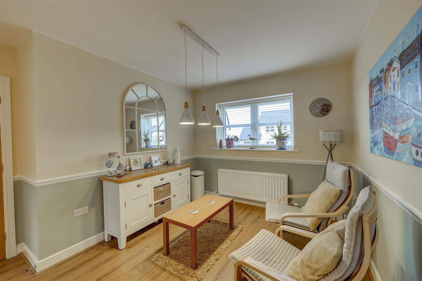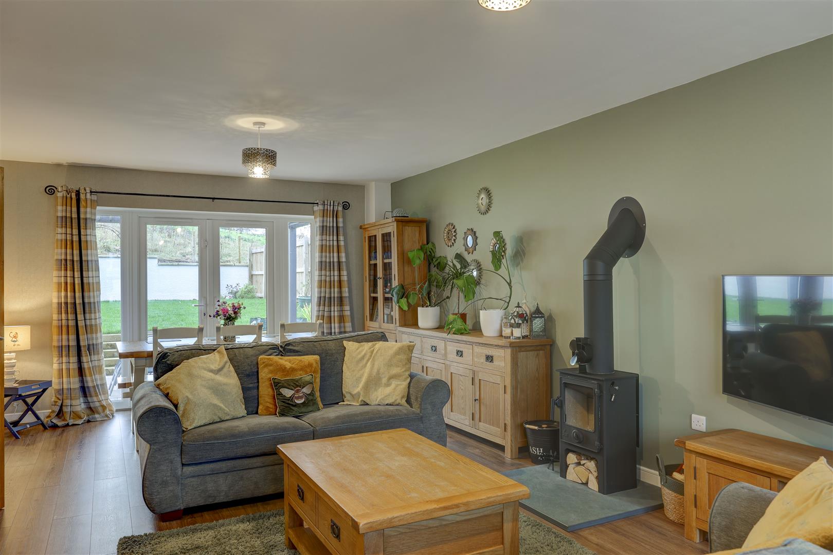 The lounge is bright and spacious, it is dual aspect and has double doors accessing the rear garden patio. In the centre of the room there is a woodburning stove set upon a stone mantle.