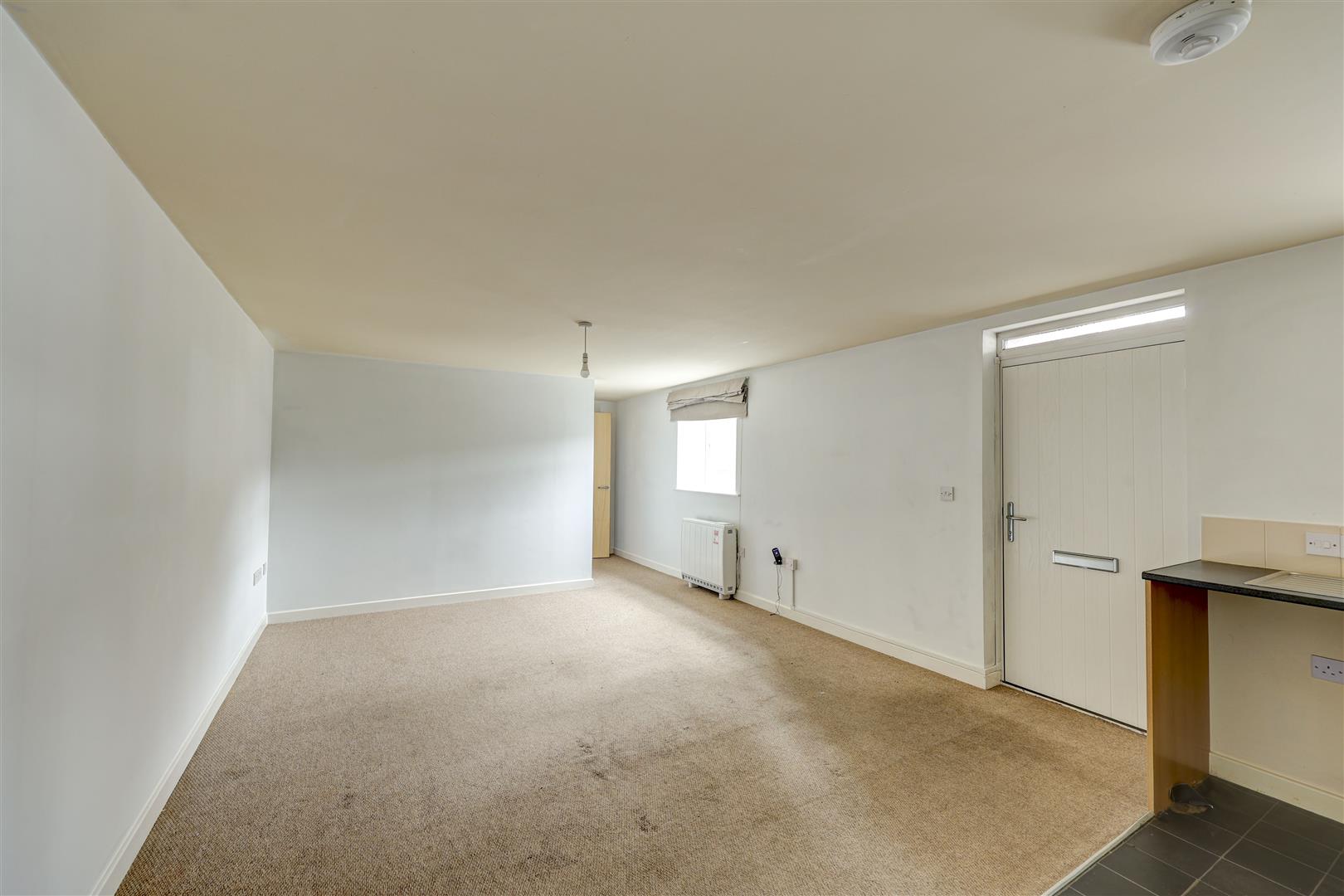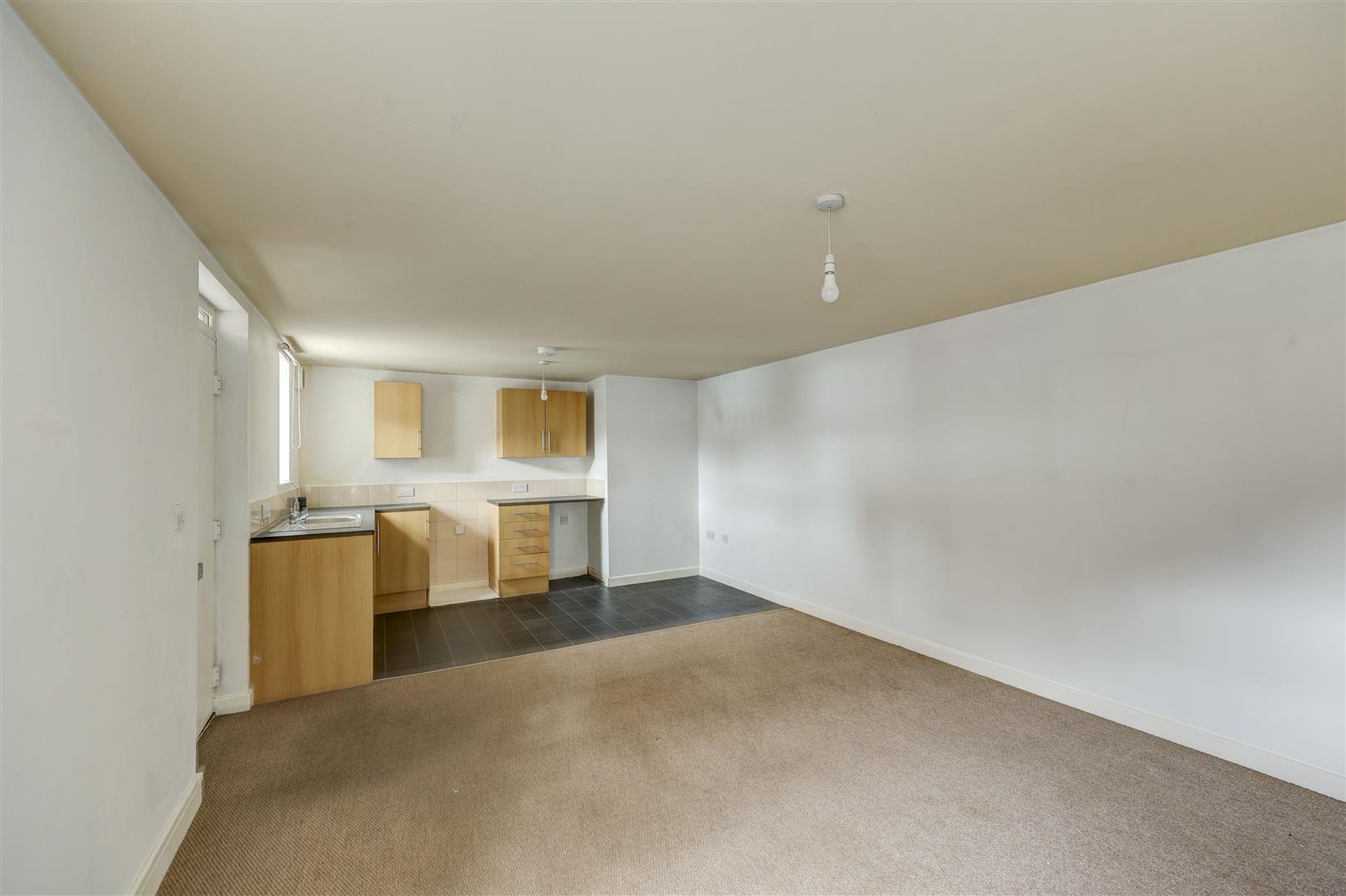Flat 1A is a ground-floor one-bedroom flat conveniently located, featuring an open-plan design with a spacious kitchen, living and dining area, and a central hallway providing access to a comfortable double bedroom, modern shower room, and practical airing cupboard.