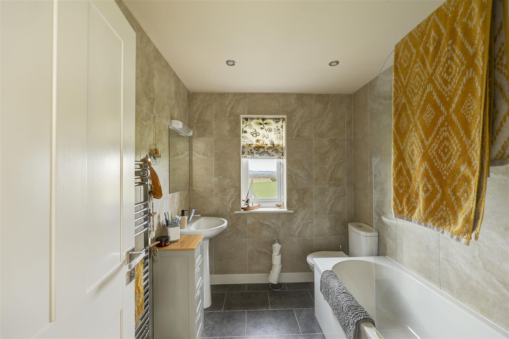 Has a fitted two-piece suite comprising, low level w.c and pedestal sink unit. Half tiled walls and flooring. uPVC double glazed window with opaque glass.