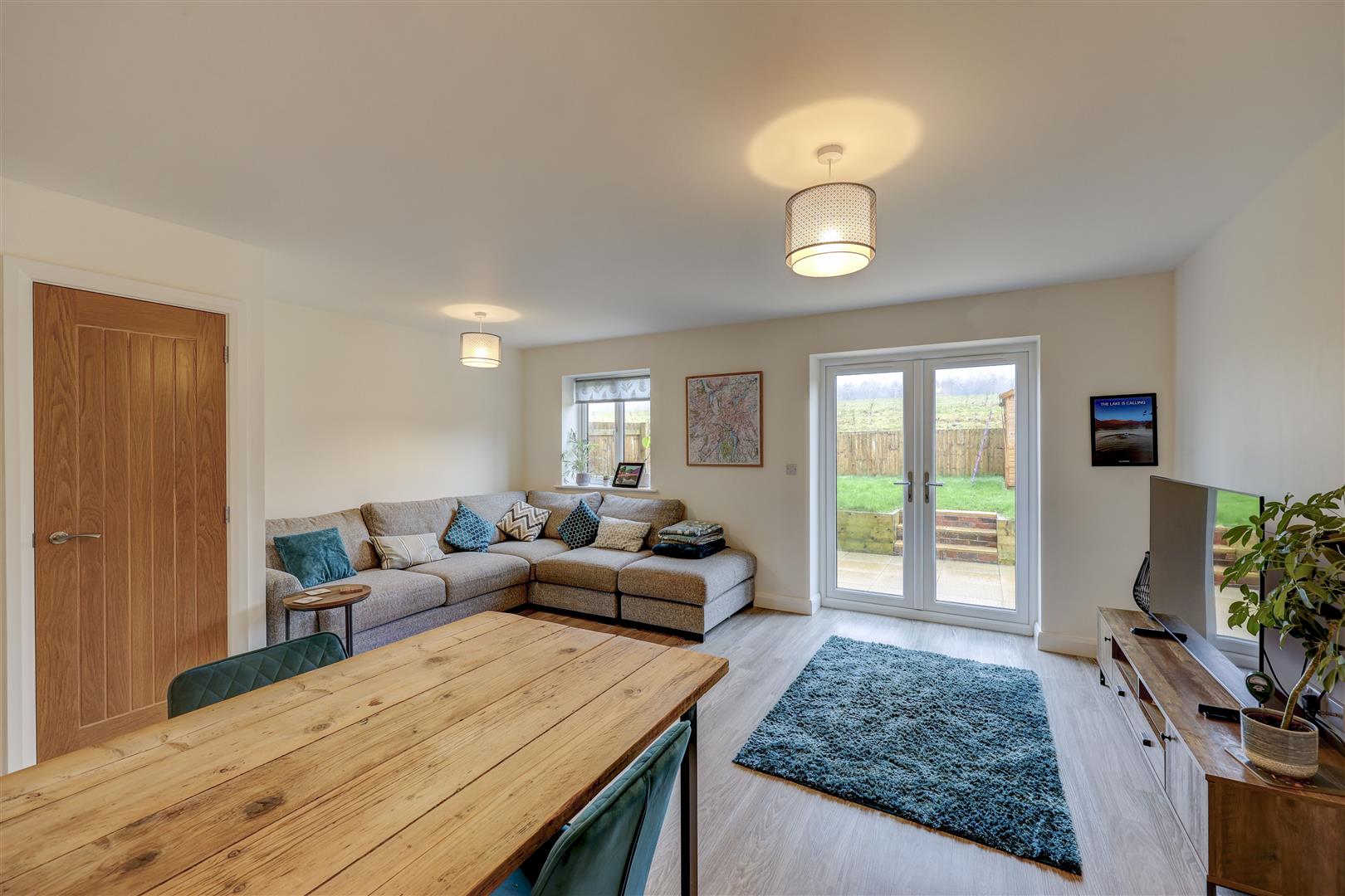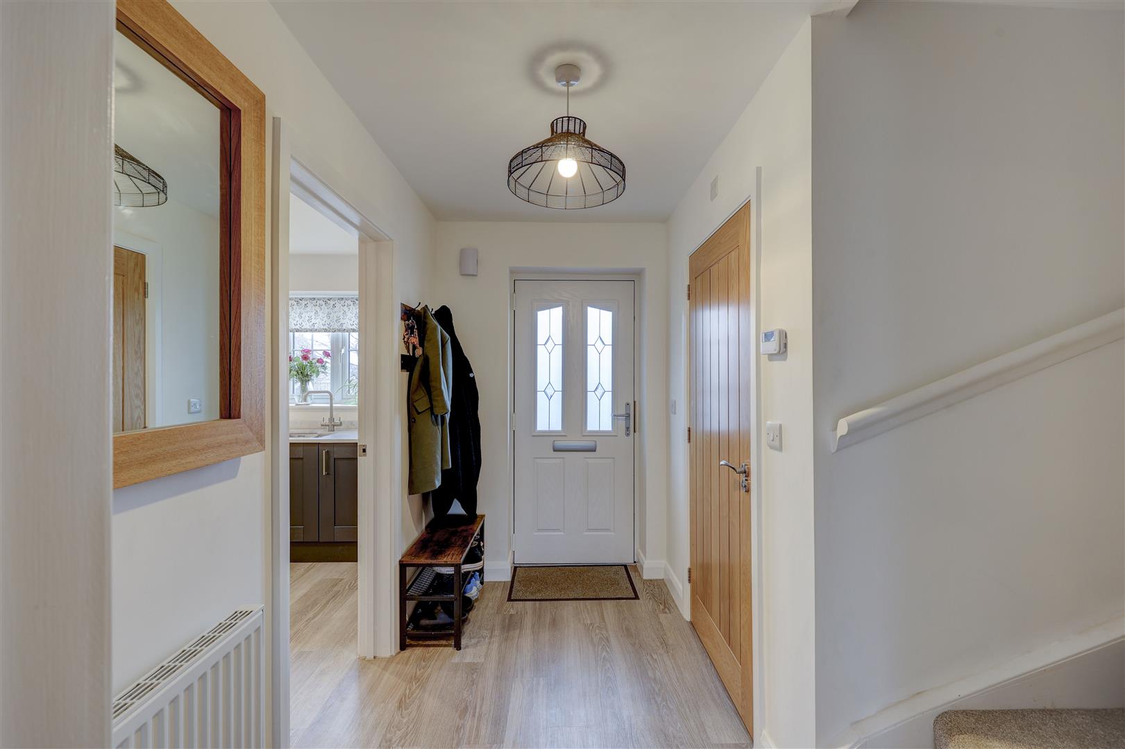 Composite front door leads into the entrance hallway. Oak doors lead to the ground floor accommodation with stairs off to the first floor landing. Wooden flooring. Radiator. Wall mounted thermostat.
