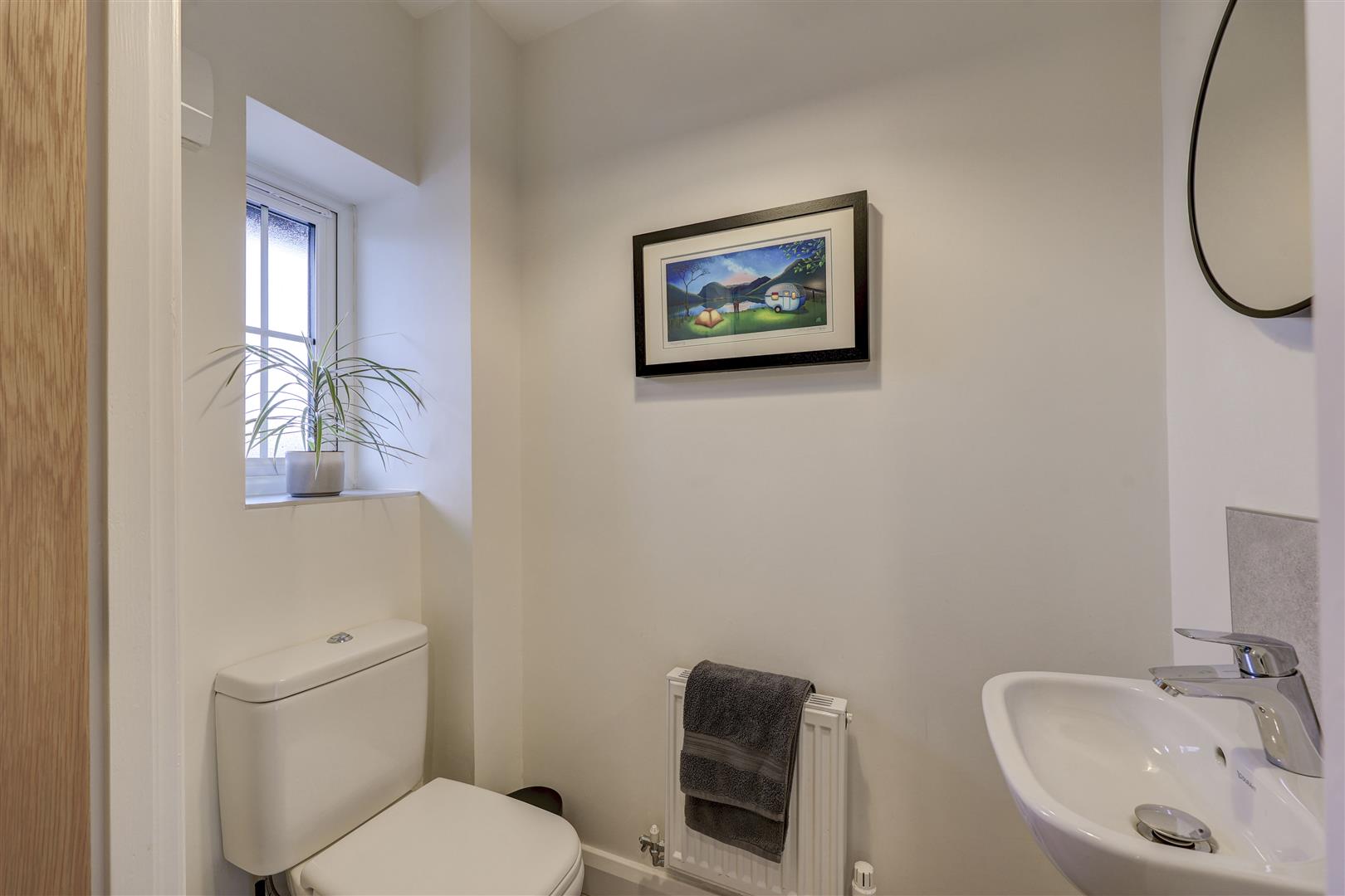 Has a fitted two-piece suite comprising: low level w.c and a sink unit with tiled splashback. Radiator. Wooden flooring. uPVC double glazed window to the front aspect.