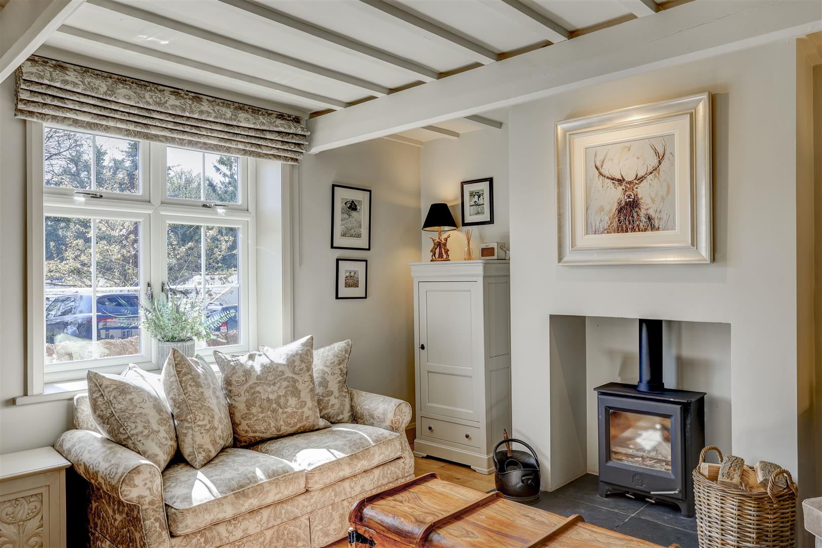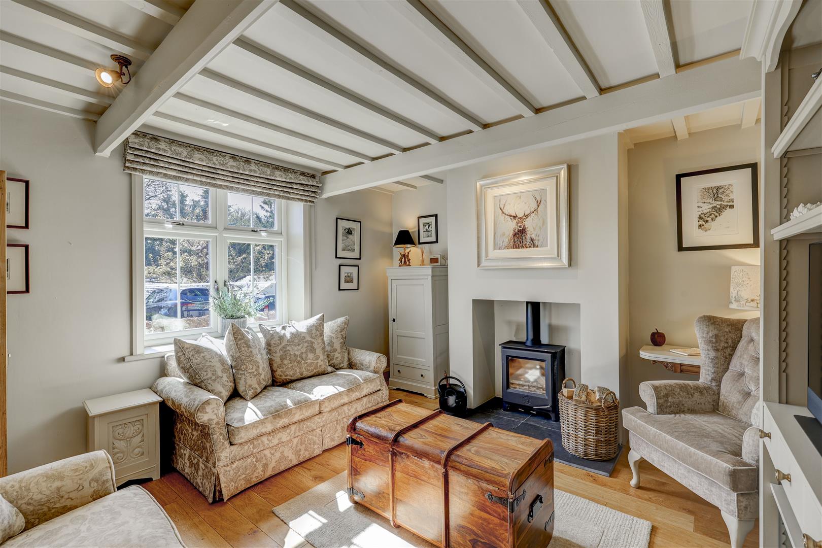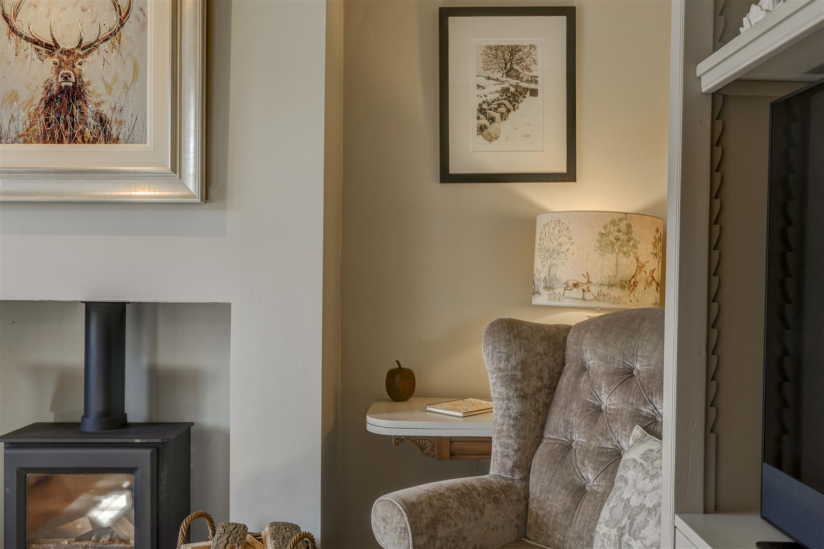 A generously proportioned and beautifully appointed sitting room, warmed by a newly installed multifuel stove (2022), which provides a stunning focal point and an efficient, cosy heat source — perfectly suited to Cumbria's cooler seasons. The room is finished with luxurious oak flooring, creating an atmosphere of understated elegance.