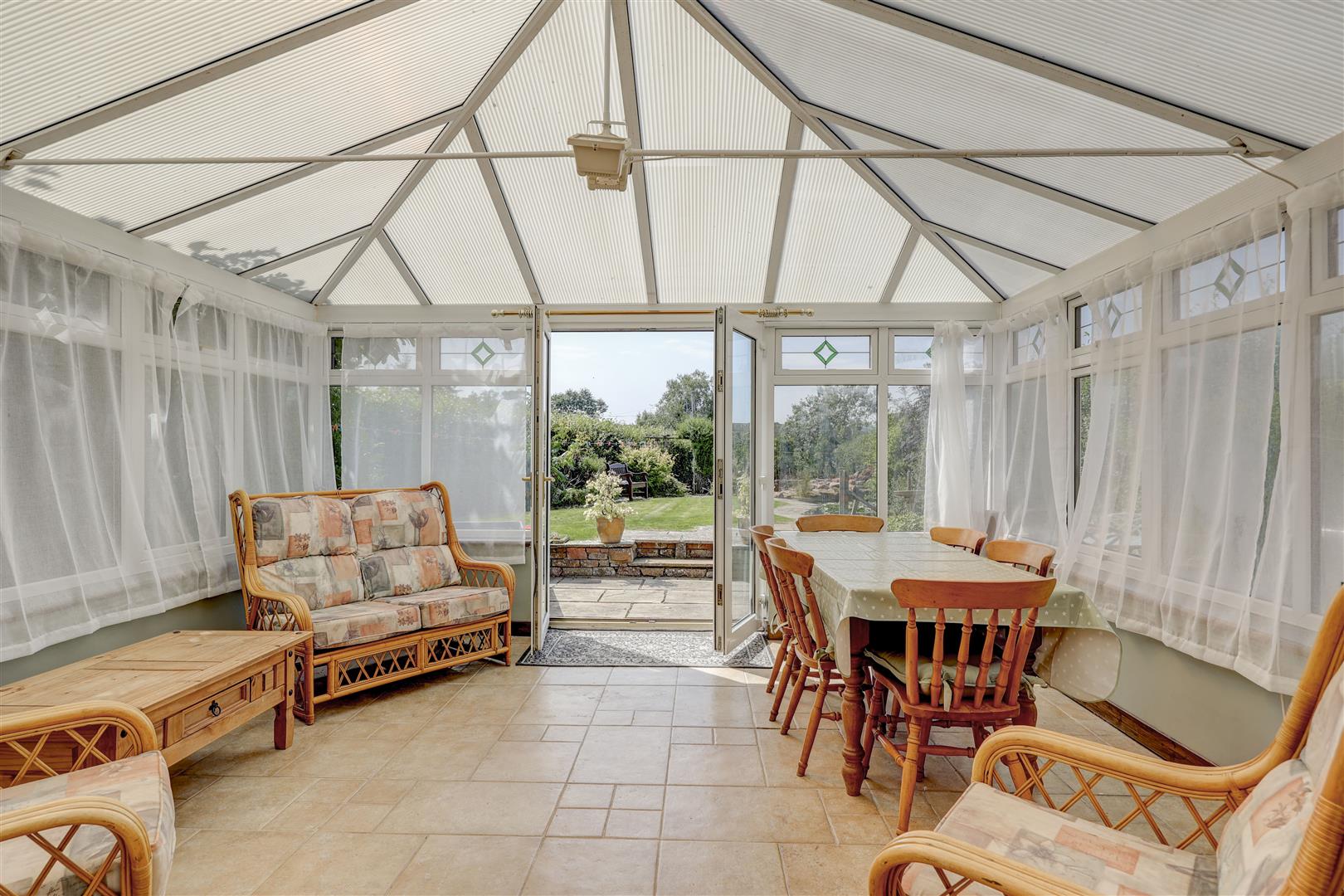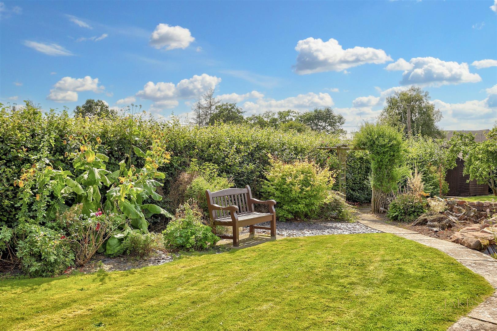 Outside, the beautifully maintained garden provides a peaceful retreat, and there is ample private parking for at least six vehicles.