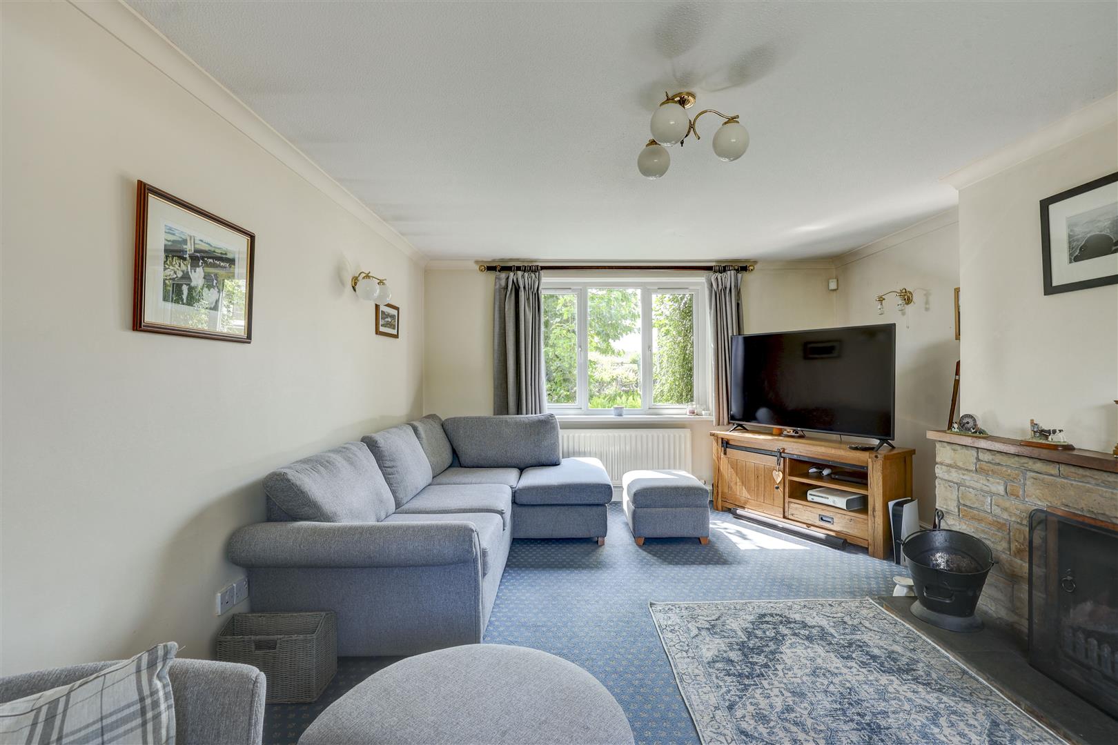 A spacious lounge with dual aspect uPVC double glazed windows to the front and rear elevation. Open fireplace with stone hearth and surround. Radiator. Fitted carpet.