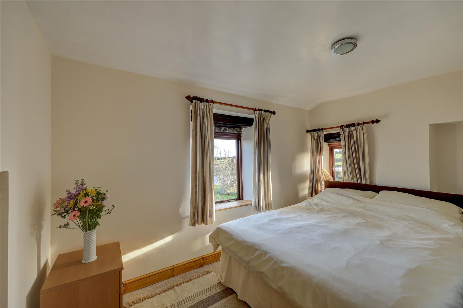 A comfortable double bedroom with dual aspects, accessed from the annexe living room.