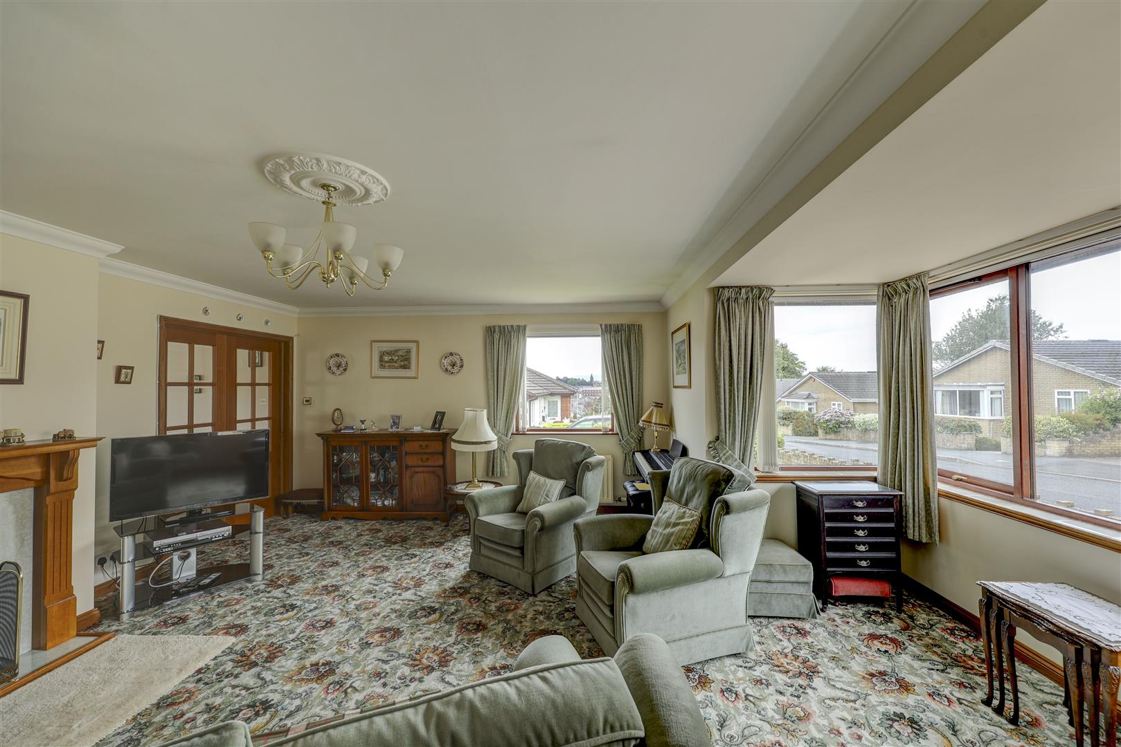A spacious lounge, perfect for family recreation. There is a double glazed bay window to the front elevation and a double glazed window to the side elevation providing stunning far reaching views to the distant Lake District fells. Fitted carpet. Radiator. Gas fire with a hearth, surround and mantle. French doors give access to the dining area of the dining kitchen.