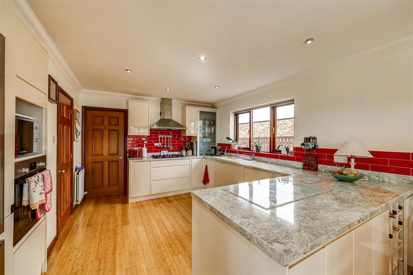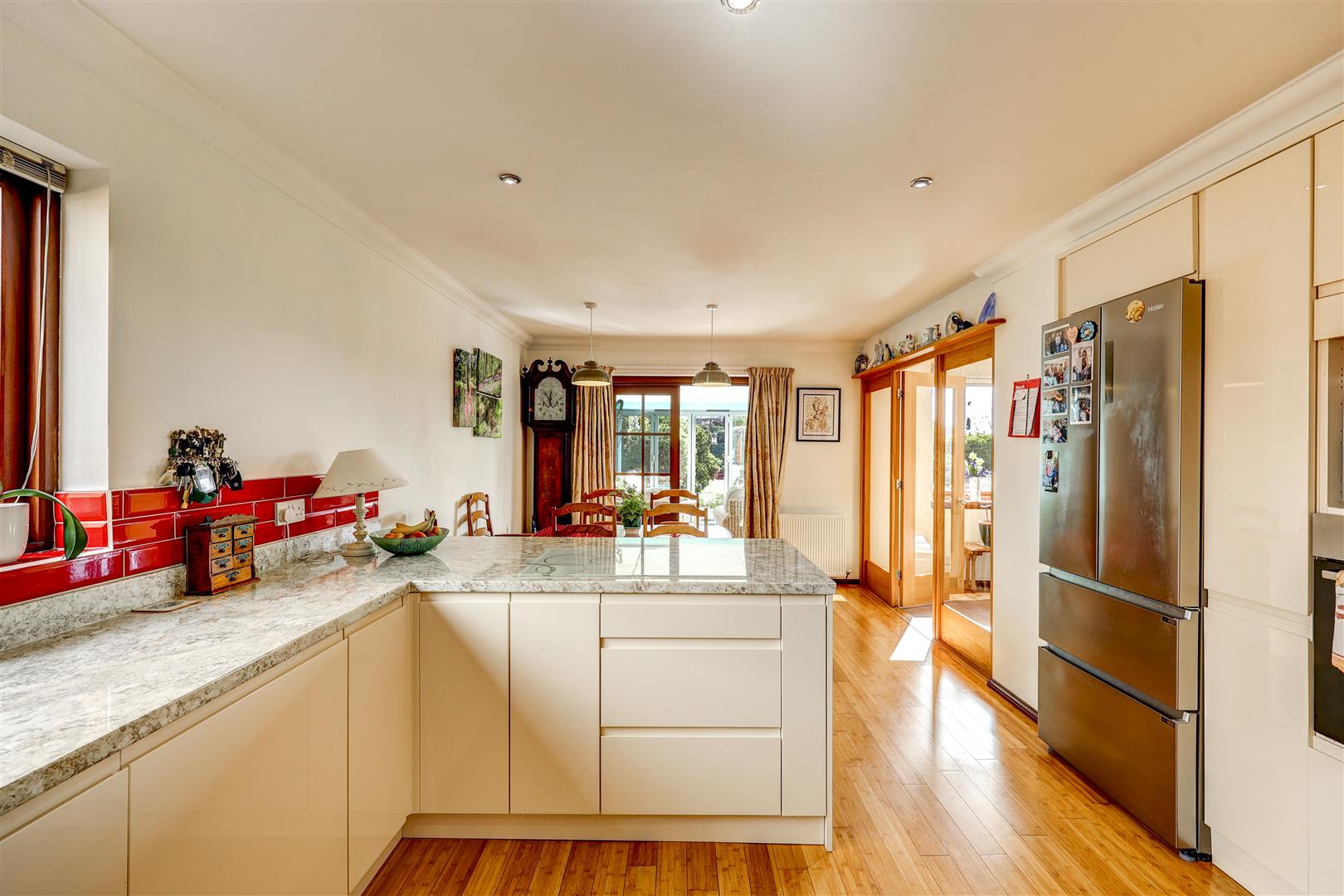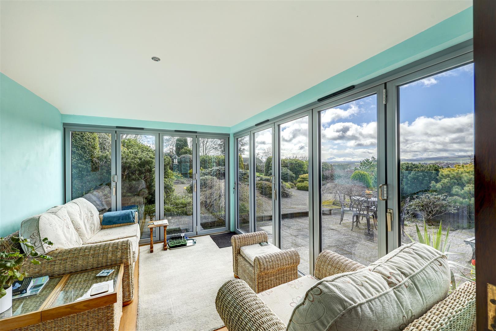 Accommodation is both generous and versatile, comprising a welcoming vestibule and entrance hall, a bright lounge, kitchen/diner, utility room, garden room, three well-proportioned bedrooms, a family bathroom and en suite. Beneath the property, a double garage offers excellent storage and exciting conversion potential for those looking to add further living space.